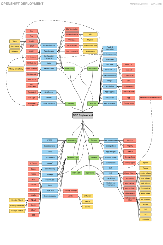 The thing which should be one of the first I saved for the last. As soon as you know where you want to go (strategy), you need to start thinking about wider architecture, such as an infrastructure density, datacenters, and availability zones. Most of the areas already covered are associated with the architecture of the platform itself. You need to make the right choices in the beginning, as distributed platforms like Openshift/Kubernetes are hard to modify (the core of it) when it is built and in use by hundreds, or even thousands, of applications. If you get networking wrong it is not impossible to change it later. If you do not accommodate the ability of your external dependencies to scale with your platform, you will create bottlenecks.
